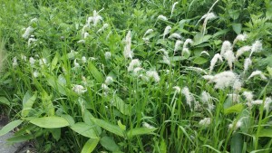 春を告げるミズバショウも、現在は葉っぱのみで大きなものは一メートル近くにもなっていて芭蕉の木の葉にそっくりです。